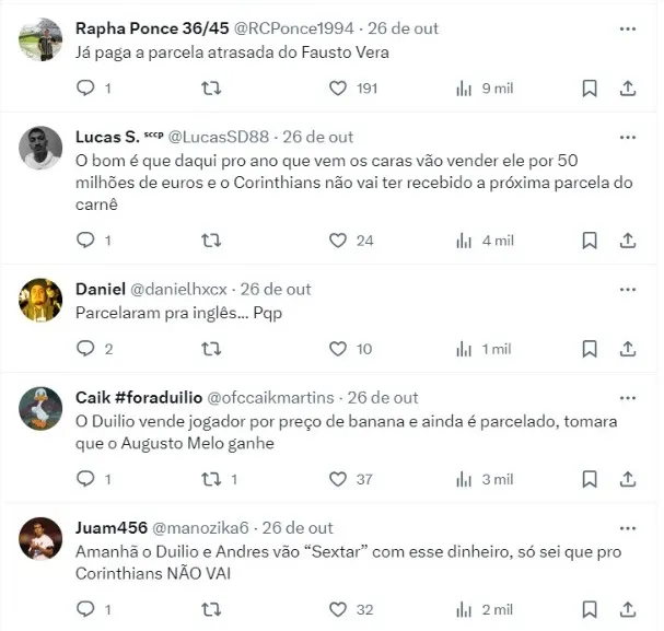 O Timão ainda tem direito a mais 8 milhões de euros (R$ 42 milhões), que serão pagos em duas vezes: uma em março de 2024 e outra em dezembro de 2024.
