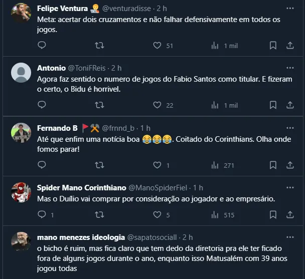 Vale destacar também que, embora o Coringão tenha realizado algumas contratações em 2023, nem todas corresponderam como o esperado. É o caso do lateral-esquerdo Matheus Bidu.