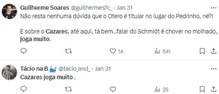 “O Carille já me avisou que eu iria jogar domingo, então me preparei bastante ao longo dessa semana. Espero fazer um jogo bom, pois sabemos da qualidade deles. Temos que estar concentrados para sair de lá com os três pontos”, completou.