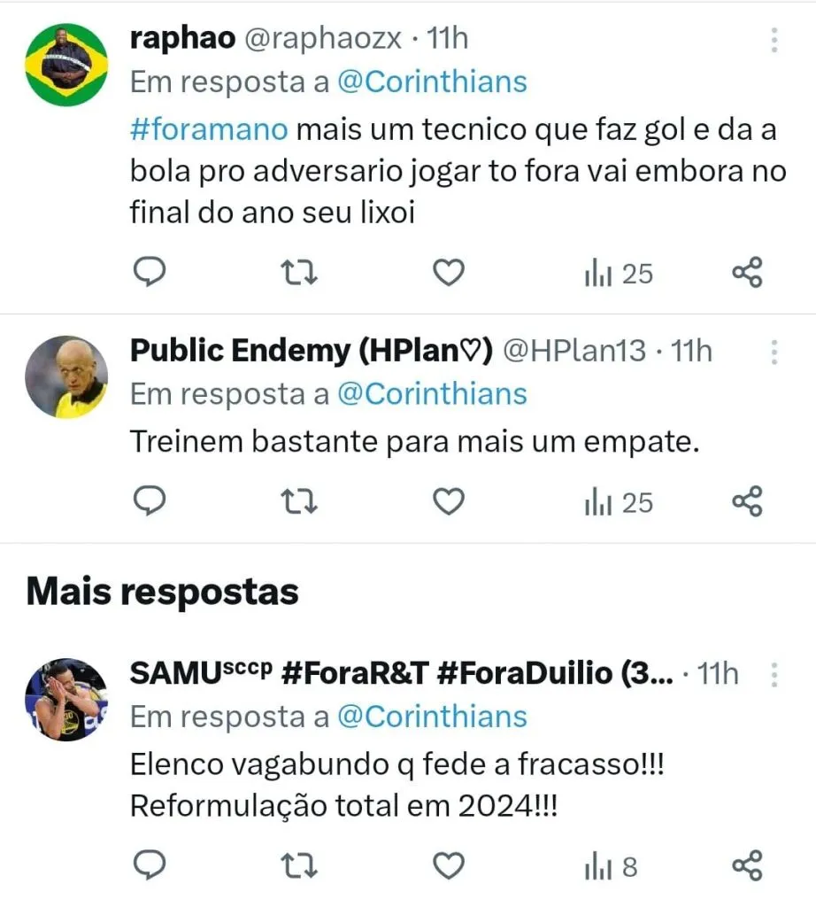 O Corinthians segue em um momento delicado na temporada. O Timão é o 14° colocado no Brasileirão e venceu apenas um dos últimos cinco jogos. Apesar das críticas da torcida, o técnico Mano Menezes não pretende promover grandes mudanças na equipe.