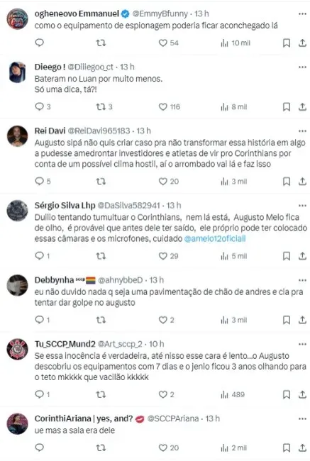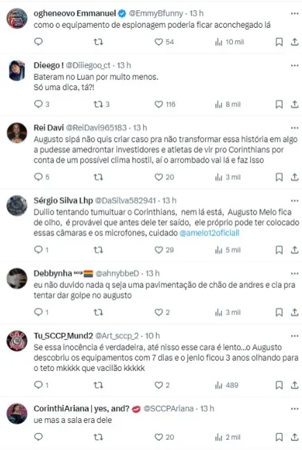 Conforme publicou a Folha de S. Paulo, vários equipamentos de espionagem foram encontrados em salas de reuniões e também da presidência do Timão, após uma vistoria realizada pelo novo mandatário.