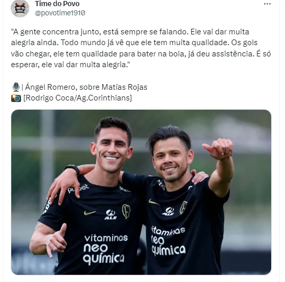 Inclusive, um compatriota dele acabou dando uma opinião e mandou um recado para a Fiel. O atacante Ángel Romero revelou que Rojas ainda vai dar muitas alegrias para o Alvinegro Paulista: “A gente concentra junto, está sempre se falando. Ele vai dar muita alegria ainda. Todo mundo já vê que ele tem muita qualidade. Os gols vão chegar, ele tem qualidade para bater na bola, já deu assistência. É só esperar, ele vai dar muita alegria”, disse.