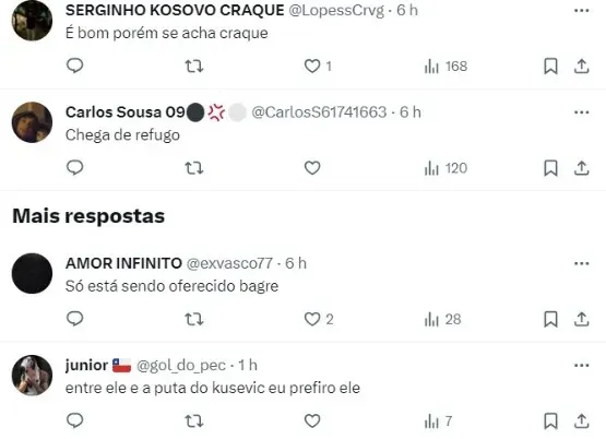 Nesta terça-feira, o portal Papo da Colina, noticiou que o zagueiro corinthiano foi oferecido ao Vasco. Os Gigantes da Colina, por sua vez, analisam a situação, mas ainda não abriu conversas para a negociação.