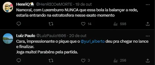 Em suas palavras: “O Yuri Alberto é o Finazzi bonito. Ele, na relação custo-benefício em 2023, é uma tragédia para o Corinthians. O ano passado nas mãos do Vítor Pereira ele até foi bem, mas este ano, mesmo tendo marcado esses dois gols contra o Fluminense, ele está devendo muito. Precisa ser mais regular, o Yuri Alberto de vez em quando apanha da bola”