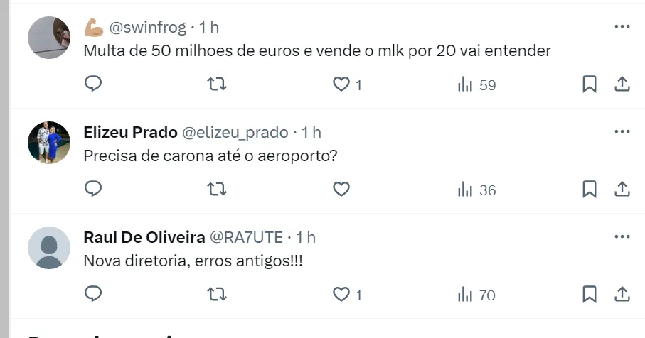 “O Augusto vai ter trabalho. Todo mundo fica com a expectativa do que vai acontecer no dia 2 (posse do novo presidente). Quais jogadores ele vai acabar anunciando nesse dia?”, completou Denilson.