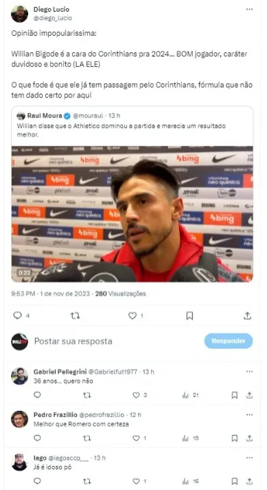Quem esteve em campo no último duelo entrando no segundo tempo foi Willian Bigode, que tem passagem pelo Parque São Jorge. Na zona mista, o veterano falou sobre retornar ao Clube onde foi campeão: