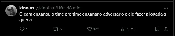 “Ah, ele é maluco, né! Esse moleque é louco! Ele falou para mim ‘vamos fazer uma jogada no segundo pau’. Ai, ele correu para a bola, e eu corri para a segunda trave, do nada, a bola direto para o gol. A gente não esperava, ainda bem que ele bateu para o gol“, comentou na zona mista da Arena Barueri.