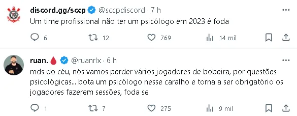 Fausto Vera expressou, em suas redes sociais, uma reflexão sobre o momento que atravessa no Corinthians.