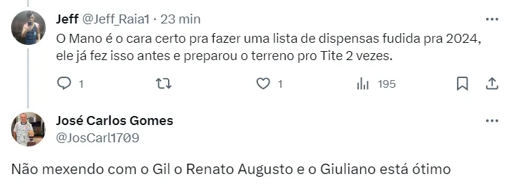 Porém, alguns atletas ainda são aprovados pelo Craque Neto. “Cássio e Gil ficam. Tem que comprar o Lucas Veríssimo, gasta o que for. Seria legal renovar com Maycon. Deixa o Rojas”, concluiu.