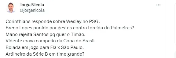 - Angileri projeta duelo final do Corinthians no Brasileirão 2025
