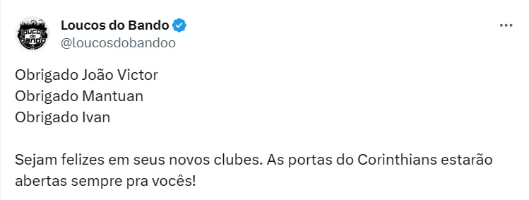 No entanto, a baixa no rendimento da equipe é algo que preocupa a Fiel Torcida. Os próximos compromisso do Timão são de extrema importância para os objetivos do time na temporada. Na quinta-feira (19), os comandados de Mano Menezes vão até o Rio de Janeiro para encarar o Fluminense. Na sequência, recebe o América-MG na Neo Química Arena.