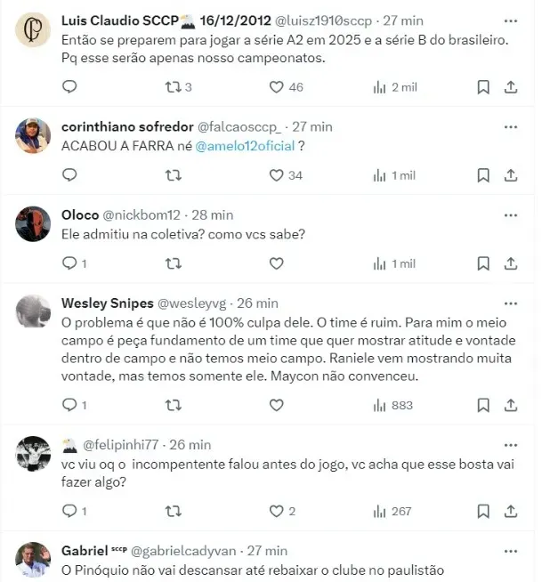Cerca de 39.603 pessoas presentes e apoiando na Neo Química Arena. Torcida do Corinthians protestou pós derrota por 3 a 1 para o Novorizontino: “Bando de c*zão, tem que ser homem pra jogar no Coringão”.
