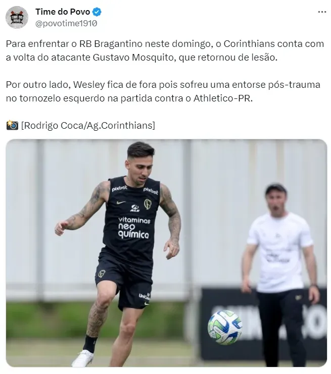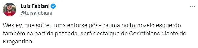 “Partida muito difícil. O Bragantino vem brigando pelo título do campeonato, jogando em sua casa. Então, a gente sabe das dificuldades que vamos enfrentar”, afirmou o lateral do Corinthians.
