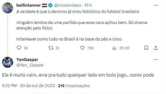 “Por isso que o futebol vira um teatro, é cênico, o jogador que faz mais cena é o que mais engana o juiz, e em consequência o VAR“, salientou o gringo, seguindo com sua análise e criticando a equipe de arbitragem:
