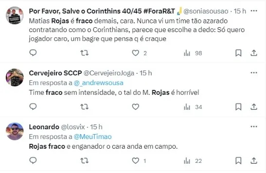 O Corinthians vem de uma derrota diante do Red Bull Bragantino, fora de casa, por 1 a 0, que teve um titular criticado: Matías Rojas. Após o jogo, Mano Menezes explicou a situação do camisa 10, que decepciona até aqui: