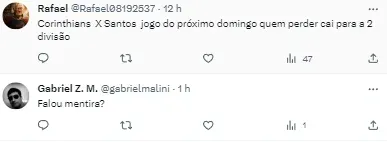 “Mas é óbvio que corre (o risco de cair). A campanha assusta e preocupa todo mundo. O pensamento do Duílio, do Alessandro, foi mudar a comissão técnica e trazer ânimo para esse elenco. Com as eliminações e o rendimento lá embaixo, devem estar com a autoestima lá no chão. Vão tentar resgatar um futebol para pelo menos pontuar na casa dos 44, 46, 47 pontos para se livrar do rebaixamento”, finalizou.