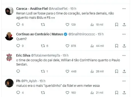 No caso do Timão, a situação não foi boa: em entrevista ao podcast “Fala, Cap”, o lateral-esquerdo Renan Lodi revelou uma conversa que teve com Willian, que saiu de uma forma bem complicada, após ser ameaçado.