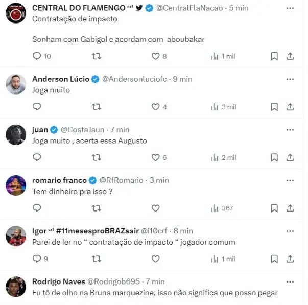 “Sobre o camaronês Vincent Aboubakar/Corinthians: Nome do atacante é mais um dos muitos que estão/passaram pelo CIFUT. Até aqui, não houve sondagem”, escreveu ele em sua conta oficial do X (antigo Twitter).