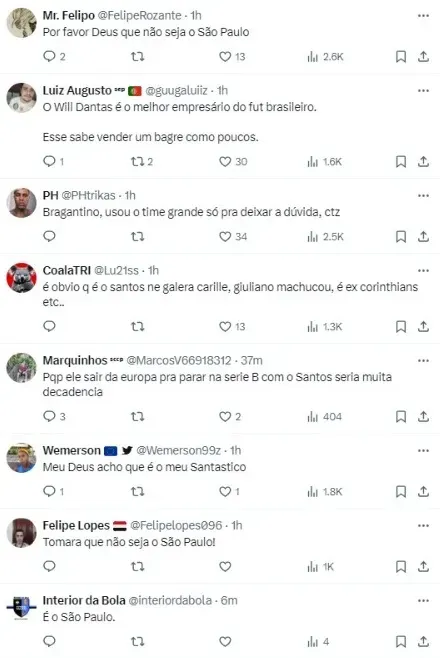 De acordo com Will Dantas, empresário do jogador, em participação no podcast Alambrado Alvinegro, um grande time de São Paulo manifestou interesse no jogador: “Hoje ligou um treinador de um time grande de São Paulo”, iniciou, indo além: