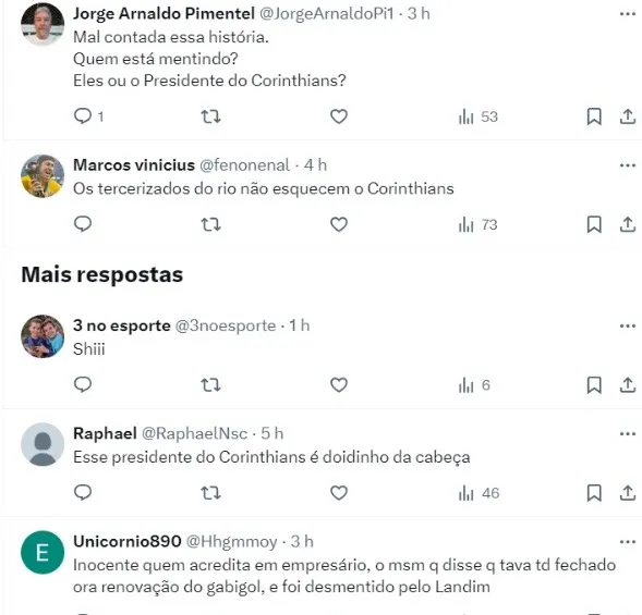 “Repito, por parte do staff e família do atleta, ninguém ofereceu o jogador ao Corinthians. Agora, óbvio, se for uma pessoa de fora do nosso ciclo, não posso te garantir”, concluiu Junior Pedroso. O trecho foi exigido ao vivo na Jovem Pan.