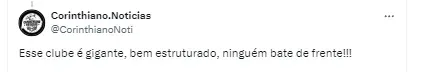 “O Corinthians aguarda a movimentação em relação ao processo de fusão das empresas. Elas criarão um grupo econômico que pode dar nome ao CT Joaquim Grava e, quem sabe, à Neo Química Arena”, concluiu.