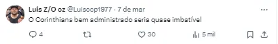 - Corinthians está no mesmo nível de Flamengo e Palmeiras, diz Paz