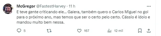 A matéria ainda frisou que a torcida do Clube Paulista deve ter ficado com um frio na espinha no momento do lance. Cássio agiu com muita frieza no lance. O camisa 12 está confirmado para o confronto contra o Grêmio.