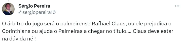 Apesar de ser um encontro recorrente no futebol paulista, esta será a primeira partida do Corinthians apitada por Raphael Claus no Campeonato Brasileiro de 2023.