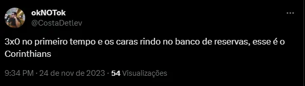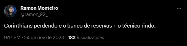“Os caras fazendo m….., corta pro banco tá o treinador e os reservas RINDO”, “3×0 no primeiro tempo e os caras rindo no banco de reservas” e “Corinthians perdendo e o banco de reservas + o técnico rindo”, foram alguns comentários.