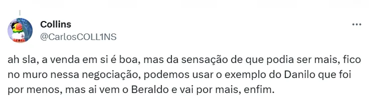 Futuro diretor de futebol do Corinthians, Rubens Gomes, o ‘Rubão’, ironizou a escolha de Moscardo pelo PSG. “Nem eu e nem Augusto (Melo) fomos a favor da venda. Mas já chegou pronta pra nós. Eu conversei com ele e ele me disse “meu ciclo no Corinthians já encerrou”. Então é isso, não tem o que fazer… PSG… vou nem falar”, disse à Rádio Bandeirantes.