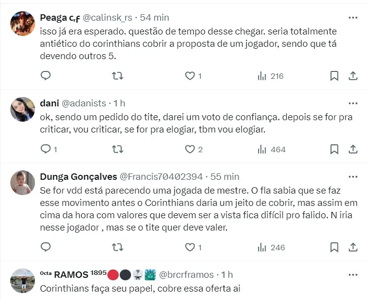 Isso porque, a diretoria da equipe carioca acredita que o Corinthians não terá condições de cobrir a oferta realizada pelo jogador, o que deixa a gestão otimista para que o negócio seja finalizado com sucesso.