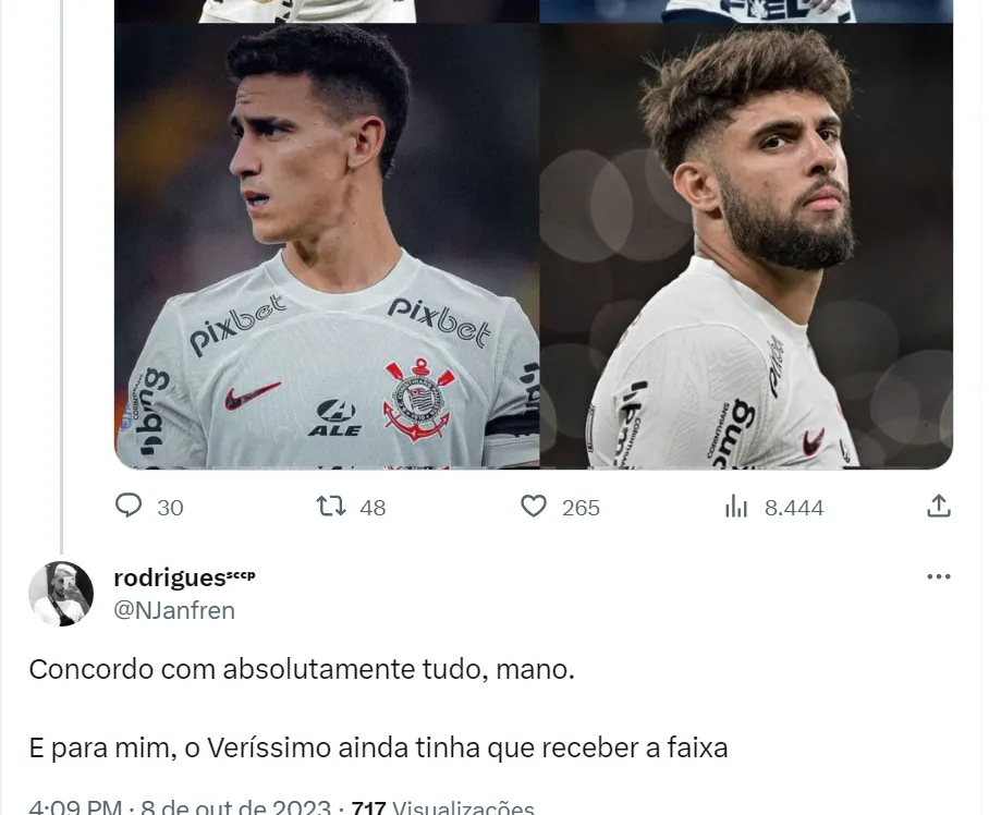 Além disso, o Corinthians deve ter muitas mudanças no elenco, tendo em vista que vários jogadores estão em fim de contrato e não vão permanecer no Clube Paulista. Descontente com a situação do Alvinegro, os torcedores corintianos concordam que o Timão precisa passar por uma reformulação no plantel e apontam o zagueiro Lucas Veríssimo, o volante Fausto Vera, o meia Matías Rojas e o atacante Yuri Alberto para liderarem a equipe em 2024.