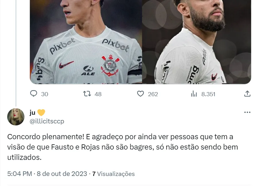 De acordo com a Fiel Torcida, esses jogadores vão ser peças fundamentais para formar o time base na próxima temporada. Rojas chegou ao Corinthians recentemente, enquanto Fausto Vera e Yuri Alberto estão no Alvinegro desde o ano passado. Já a situação de Veríssimo é diferente: ele está emprestado ao Timão até o meio do ano que vem e, para permanecer, precisará ser comprado junto ao Benfica.