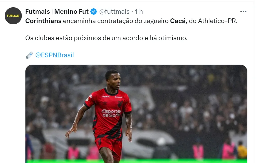 A situação avançou entre Corinthians, Athletico-PR e o Tokushima Vortis, do Japão. “Fontes envolvidas nas negociações disseram que os clubes estão próximos de um acordo, e há otimismo da transferência ser selada”, complementa a matéria.