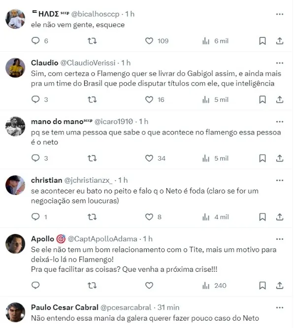 Outro facilitador nesta negociação é o Flamengo, que segundo o apresentador, não gostaria de contar mais com o atacante, já que Gabriel não tem um bom relacionamento com o técnico Tite.