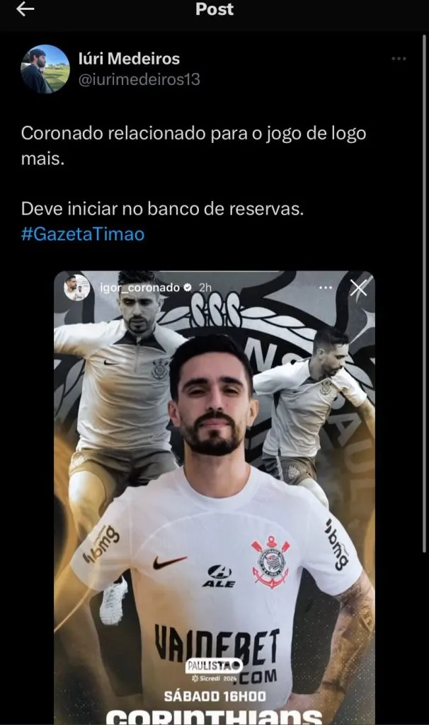Ao lado de Rodrigo Garro e com a saída de Rojas, Igor Coronado pode ser a substituição ideal que o Corinthians tanto procura para as saídas de Renato Augusto e Giuliano. Além da novidade do reforço na escalação, foi revelado também o interesse do Timão em Richard Ríos, do Palmeira.