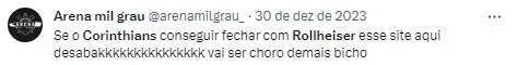 Porém, as informações recentes dão conta de que ele está perto de ser anunciado por um novo time e não deve ser o Corinthians. Em vídeo publicado em seu canal no YouTube, o jornalista Jorge Nicola assegurou que uma fonte sua dentro do Timão o informou que o Clube foi comunicado que Rollheiser está fechado com o Benfica.