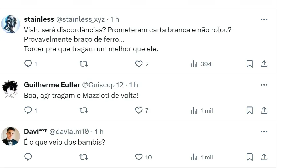 Novi havia sido contratado pelo Corinthians no fim de 2023 exatamente a pedido do presidente Augusto Melo. A ideia era substituir exatamente Joaquim Grava, afastado anteriormente.