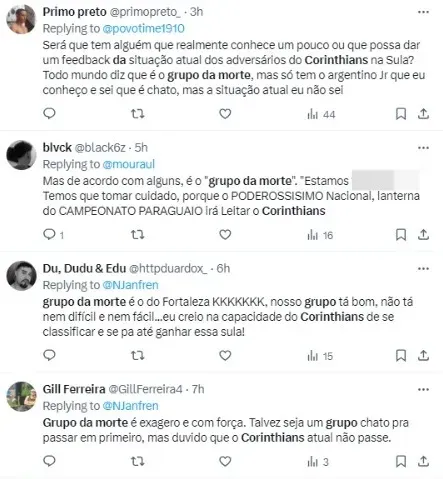 O Corinthians, por exemplo, já sabe quem vai enfrentar no torneio continental em busca do título inédito, caindo no Grupo F com: Argentinos Jrs-ARG, Racing Montevideo-URU e Nacional-PAR.