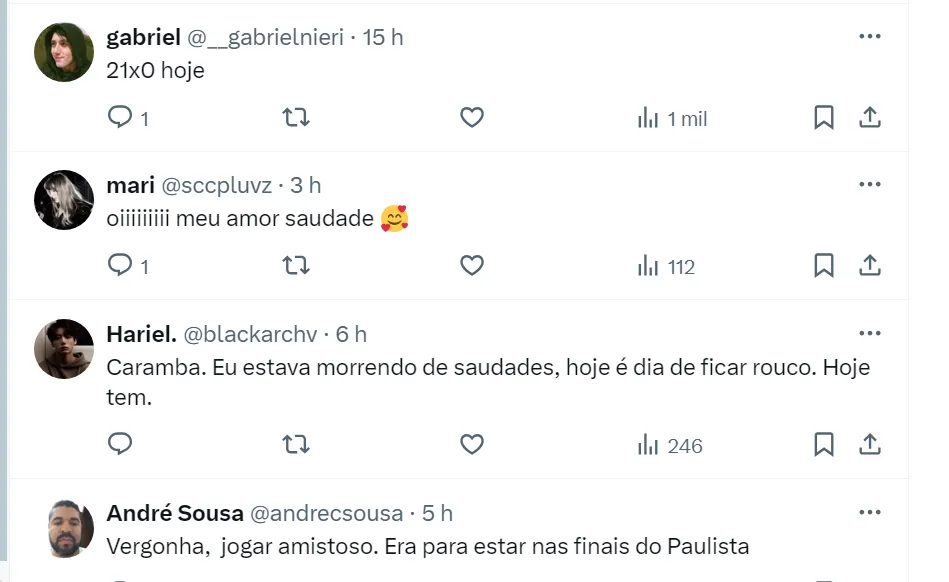 Com isso, a possibilidade de virar gestor, que foi levantada por seu ex-companheiro de equipe, ainda está longe de acontecer. Com a camisa alvinegra, o camisa 12 conquistou muitos títulos e deseja seguir fazendo história. O próximo torneio oficial pelo Timão vai ser a Copa Sul-Americana (veja os adversários).