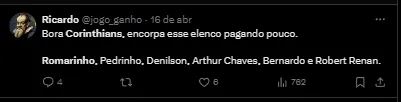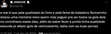 volte imediatamente pro Corinthians Romarinho, estamos precisando de jogadores como vc no nosso time.pic.twitter.com/lhrWlXHBYW https://t.co/rYj4ieQemP