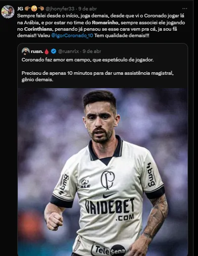 Ele é um nome querido pela Fiel e vem sendo um dos nomes que está no futebol da Arábia Saudita. Mesmo com a chegada de vários atletas badalados, o brasileiro segue sendo um dos principais jogadores do país.