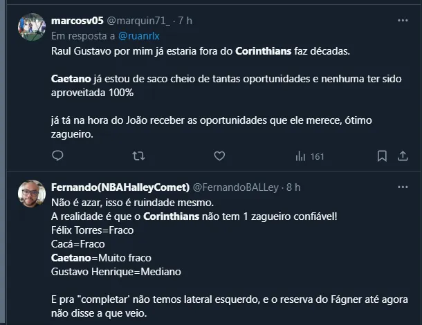 Banco de António Oliveira Carlos Miguel entre os titulares do Corinthians: “Eu subo o melhor”