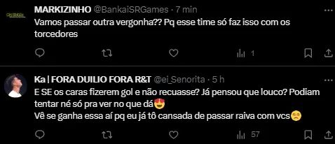 “Essa cobrança tem que ter um limite, até certo ponto isso não pode ser normalizado… O que a gente tenta é fazer com que as vitórias venham para a gente não ter esse tipo de cobrança e isso só vai acabar quando acontecer uma tragédia…”
