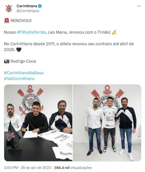 Léo Mana teve seu vínculo renovado recentemente, o novo contrato entre clube e jogador vai até abril de 2026. O prazo é um ano a mais do que era estipulado no contrato anterior. Por fim, com base na entrevista de Vanderlei Luxemburgo, provavelmente o lateral deverá ser utilizado em novas partidas do Timão.