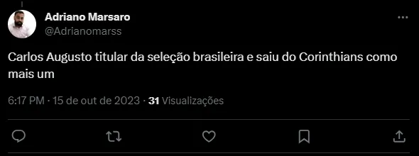O Corinthians tem um jogador revelado no clube além de Marquinhos e Arana na Seleção Brasileira nesta Data FIFA. Trata-se do lateral-esquerdo Carlos Augusto, que inclusive deve ser titular no duelo contra o Uruguai, nesta terça-feira (17), em Montevidéu, pela quarta rodada das Eliminatórias para a Copa do Mundo de 2026. O jogador desbancou Arana e pegou o lugar no time titular.
