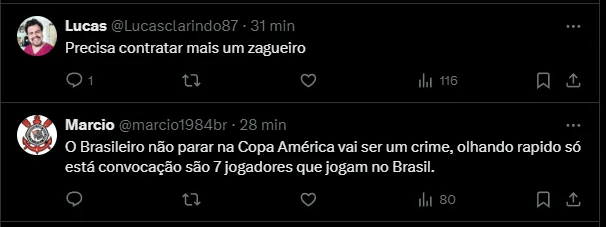 O jogo diante da Guatemala ocorre na quinta-feira (21), já o amistoso com a Itália será no domingo (24). Durante esse período, o Corinthians não possui jogos oficiais, afinal, já está eliminado do Campeonato Paulista de 2024.