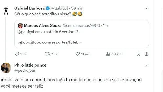 Os agentes de Gabigol só conversarão com o Corinthians se uma renovação do contrato do atacante com o Flamengo, válido até dezembro de 2024, não acontecer.