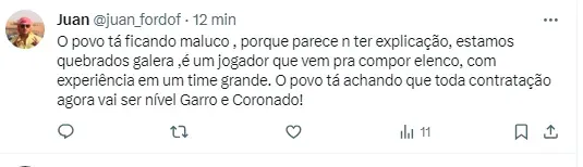 Sendo assim, a intenção do presidente Augusto Melo e do executivo de futebol Fabinho Soldado, seria anunciar um verdadeiro pacote de reforços até essa sexta-feira (14). Junto com ele, o lateral-direito Matheuzinho e o meia Igor Coronado têm acordos para serem oficializados.