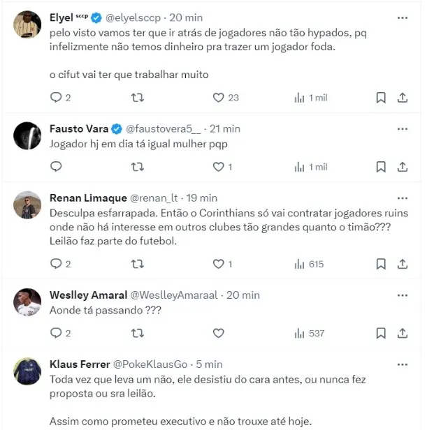 Perguntado sobre uma possível contratação de Luiz Henrique, do Bétis, Augusto Melo respondeu: “Sobre o Luiz Henrique, foi nos oferecido, fizemos uma proposta, mas quando chega em leilão, a gente sai fora”.